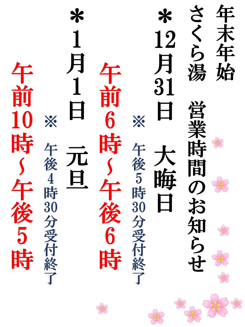 12月31日 午前6時~午後6時(受付終了 午後5時30分)